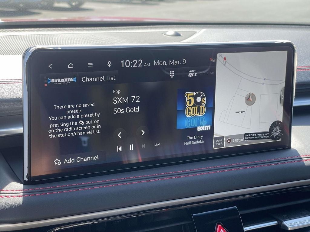 - Radio: AM/FM/HD Lexicon Prem Audio System -inc: QuantumLogic surround sound, 15 high efficiency speakers including 2 subwoofers, Lexicon 11-channel digital external amplifier, speed-sensing, 5th generation navigation system w/10.25" touchscreen, dynamic voice recognition, connected routing, over the air updates, Android Auto and Apple CarPlay, USB connectivity, SiriusXM satellite radio w/90-day trial subscription (not available in Alaska or Hawaii), Genesis connected services, Bluetooth® hands-free phone and audio streaming system