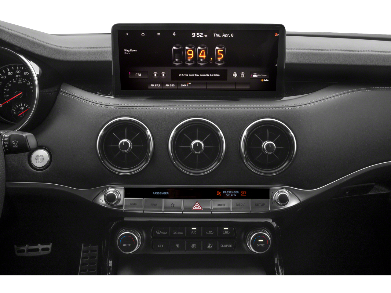 - Radio: harmon/kardon AM/FM/HD Audio System -inc: 720 watts, navigation system w/10.25" touchscreen color display, 15-speakers including dual underseat subwoofers, Quantum Logic surround sound, Clari-Fi signal enhancing technology, USB input, Android Auto/Apple CarPlay smartphone integration, Bluetooth® wireless connectivity, wireless charger, steering-wheel-mounted controls, MP3, satellite radio and UVO Link